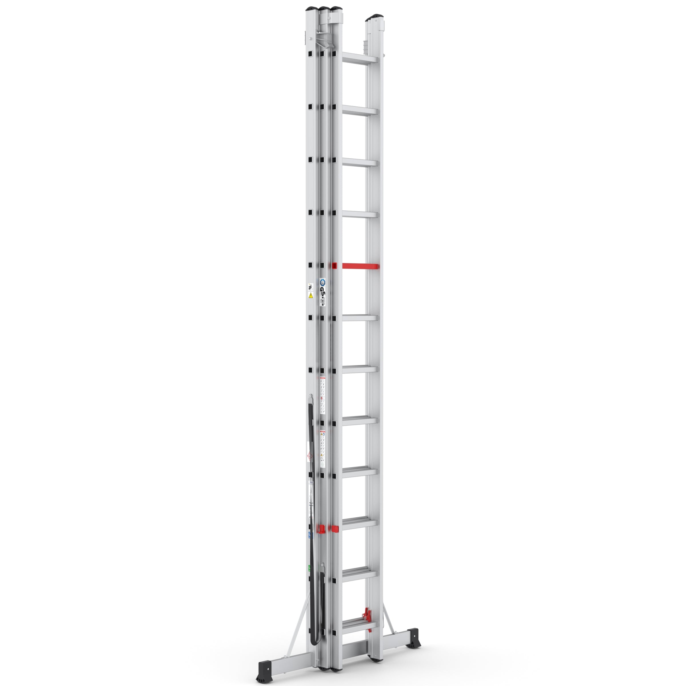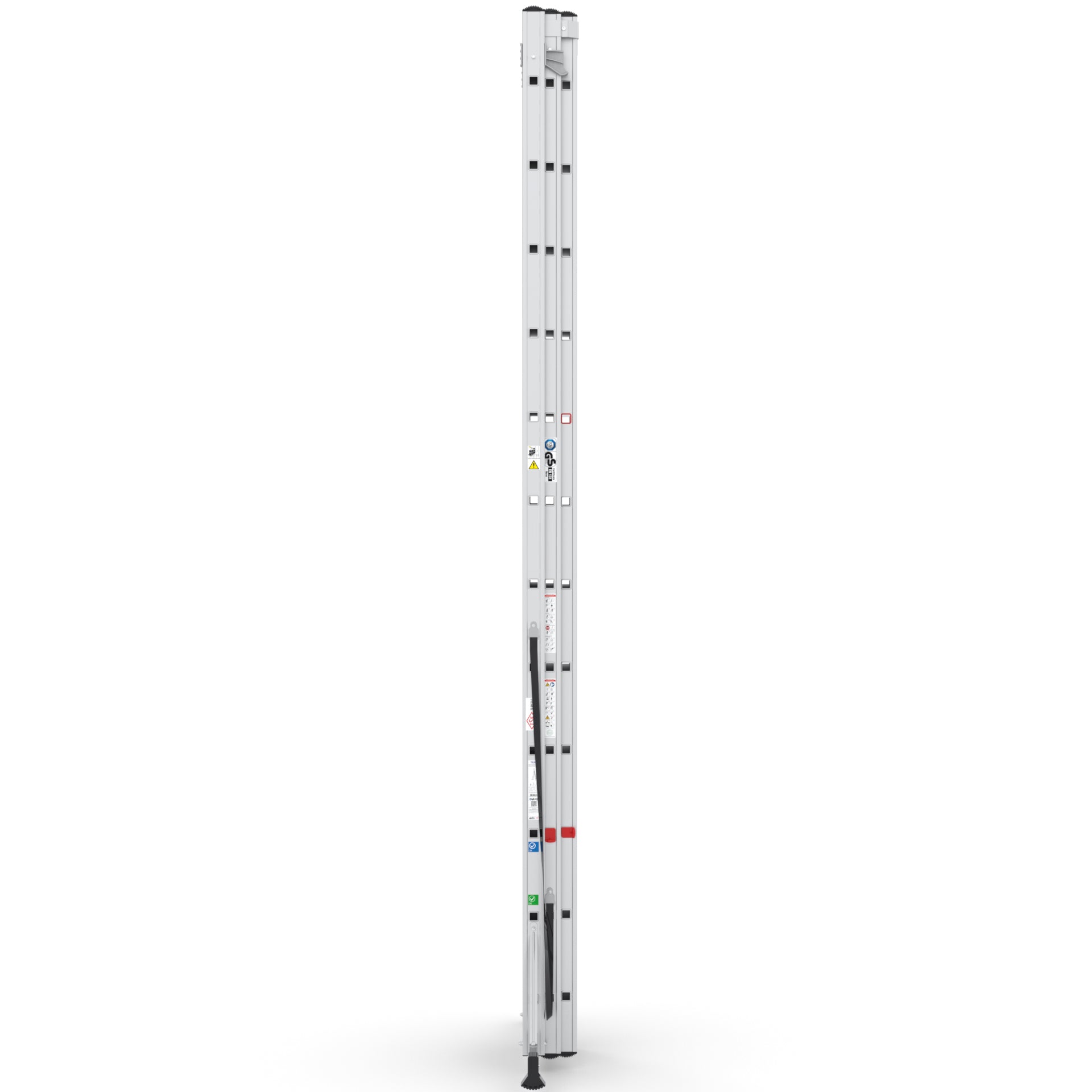 Die Leitern können sowohl in der ausgefahrenen als auch in der A-Rahmen-Position verwendet werden, was sie äußerst vielseitig macht. Zusätzlich sind die Stabilisatoren extra verstärkt, um maximale Stabilität und Sicherheit zu gewährleisten.