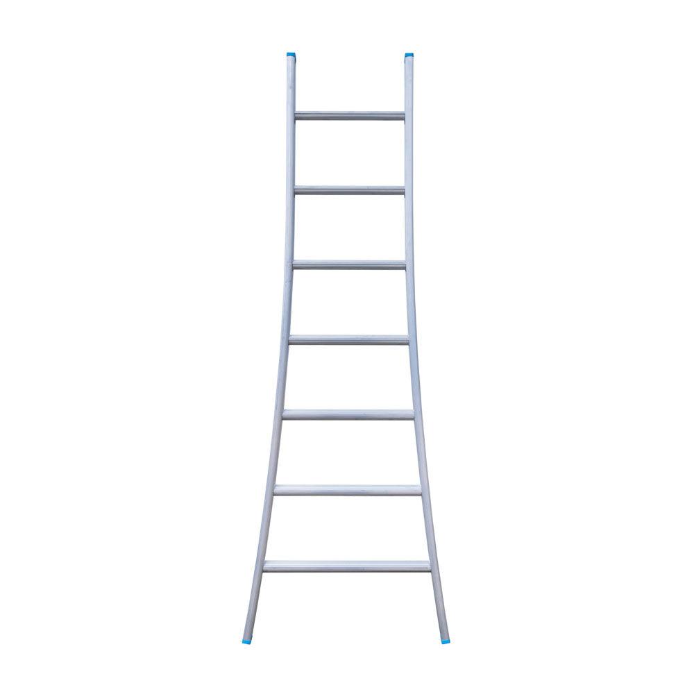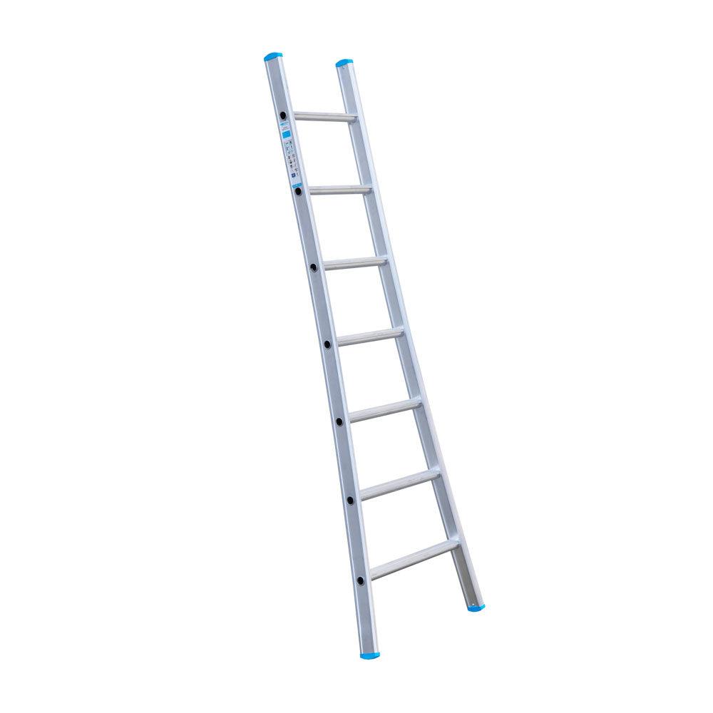 Anlegeleiter von Eurostairs mit 7 4 cm breiten Sprossen, Antirutschkappen und einer gebogenen Unterseite für eine breitere Standfläche. Die Leiter aus glattem Aluminium hat eine Länge von 2,00 Metern und ist ideal für Malerarbeiten. Dank ihres geringen Gewichts von 4,6 kg ist die Leiter bequem zu benutzen und leicht zu bewegen. Sie brauchen die Einzelleiter nur an eine Fassade zu stellen. Die Eurostairs Leitern haben ein europäisches EN131-Zertifikat und sind für Heimwerker und Profis gleichermaßen geeignet.