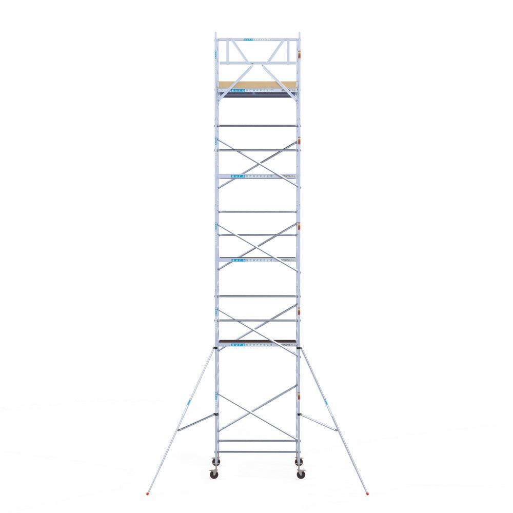 Unsere Rollgerüste sind in verschiedenen Breiten erhältlich, typischerweise 75 cm, 90 cm und 135 cm, abhängig vom jeweiligen Modell und der Produktlinie (semi-professionell oder professionell). Die 75 cm Breite ist ideal für beengte Räume, während 135 cm maximale Arbeitsfläche bietet.
