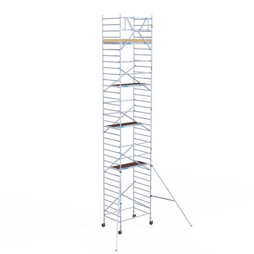 Rollgerüst Euroscaffold Basic 135x190 11,2m Arbeitshöhe Carbonplattform gegen Fassade