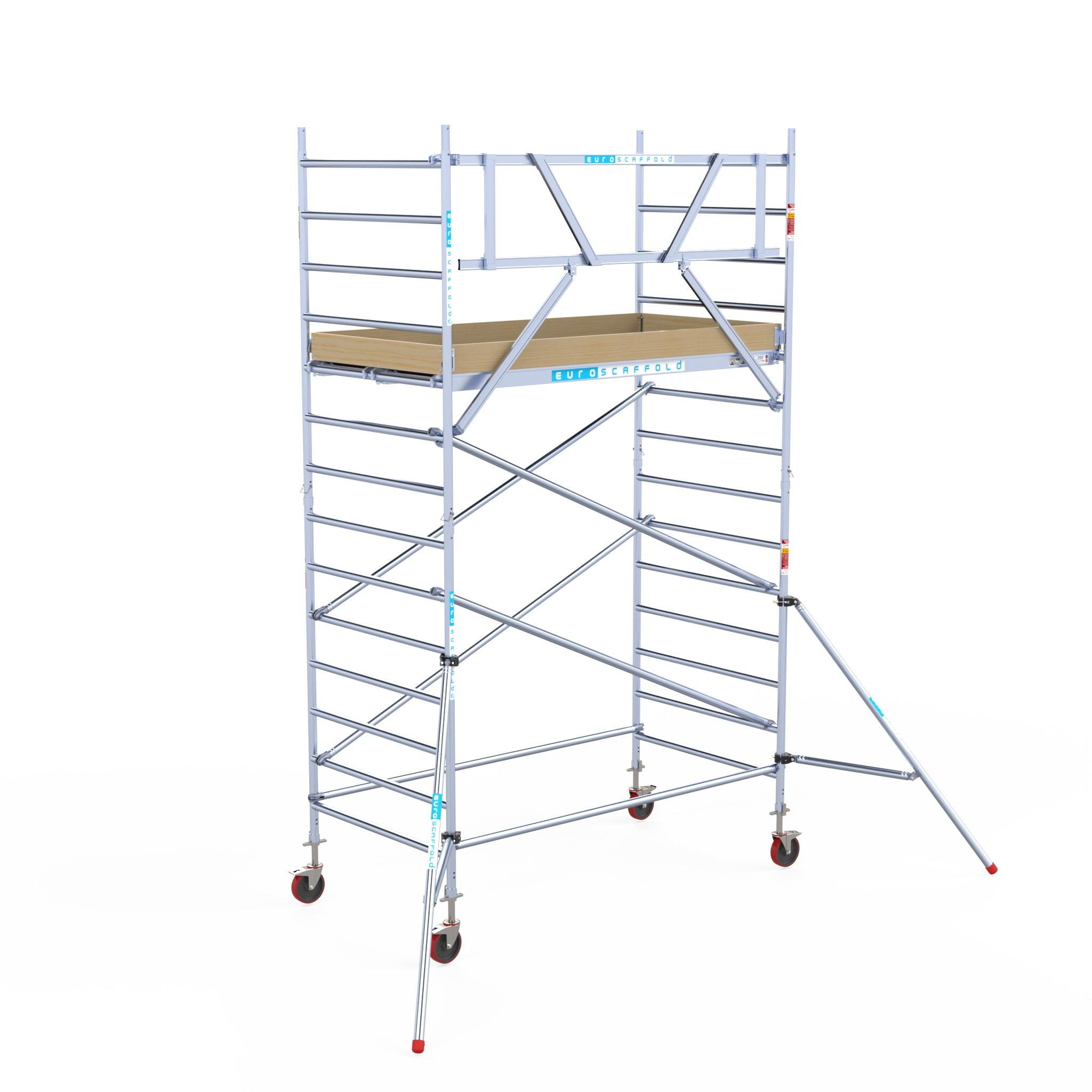 Rollgerüst Euroscaffold Basic 135x250 5,2m Arbeitshöhe Carbonplattform gegen Fassade