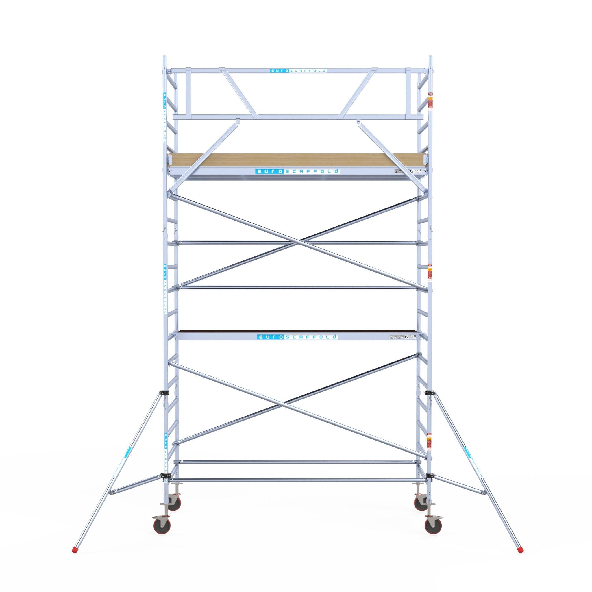 Rollgerüst Euroscaffold Basic 135x305 6,2m Arbeitshöhe Carbonplattform gegen Fassade