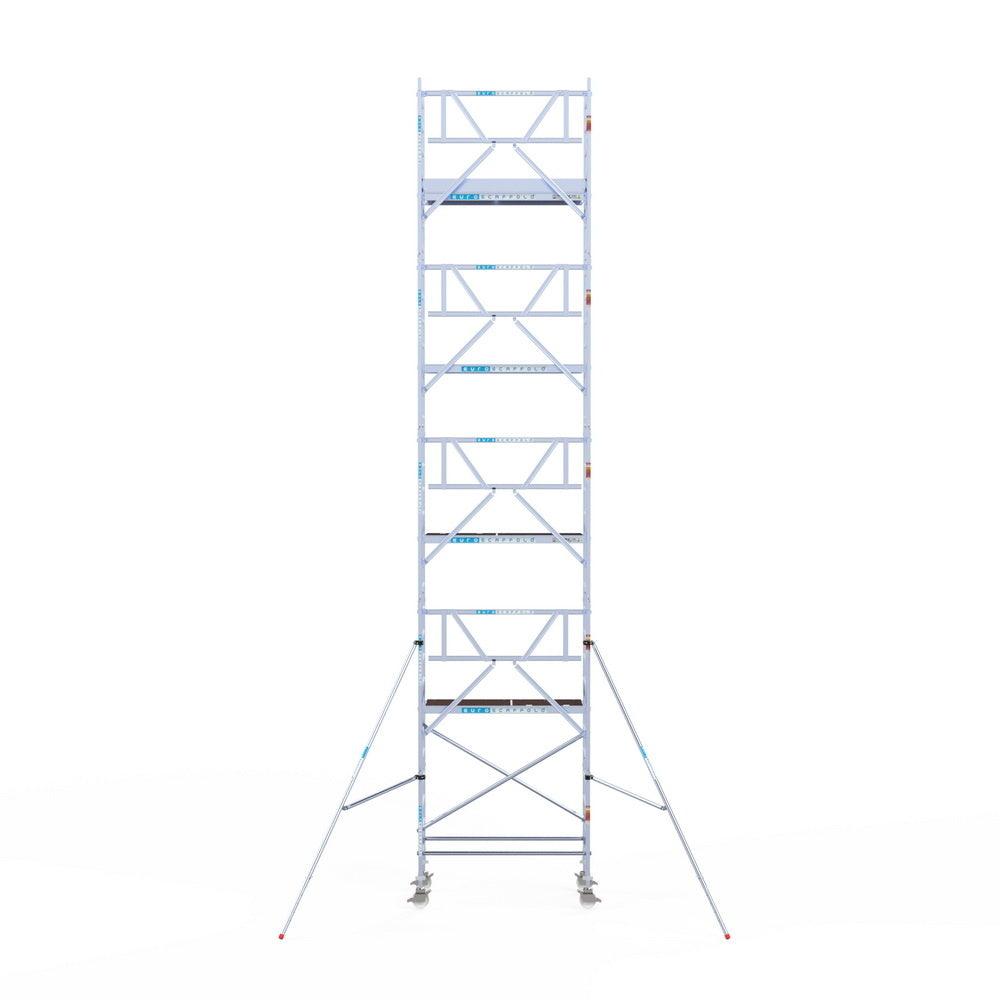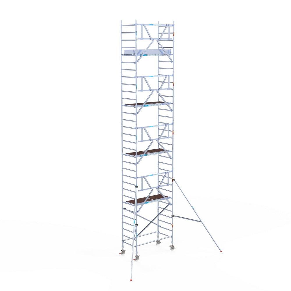 Unsere Rollgerüste sind in verschiedenen Breiten erhältlich, typischerweise 75 cm, 90 cm und 135 cm, abhängig vom jeweiligen Modell und der Produktlinie (semi-professionell oder professionell). Die 75 cm Breite ist ideal für beengte Räume, während 135 cm maximale Arbeitsfläche bietet.