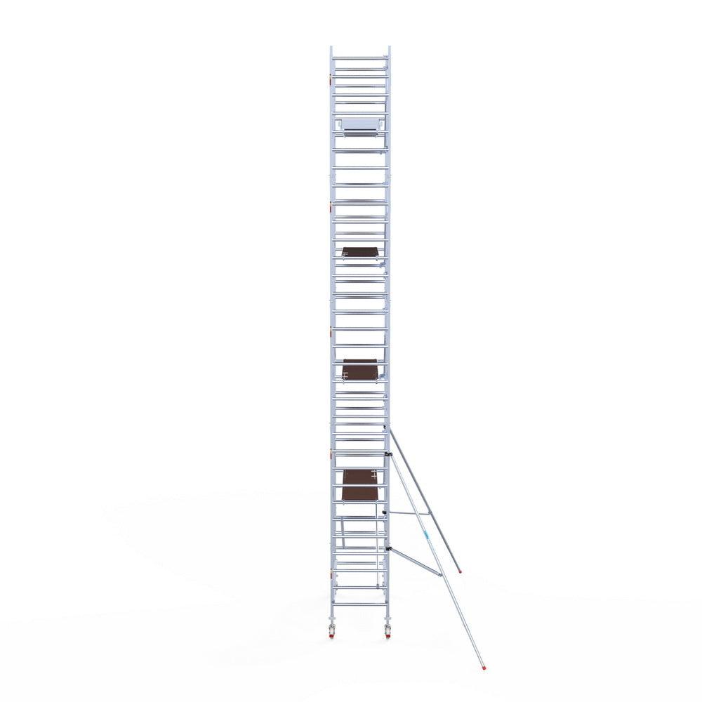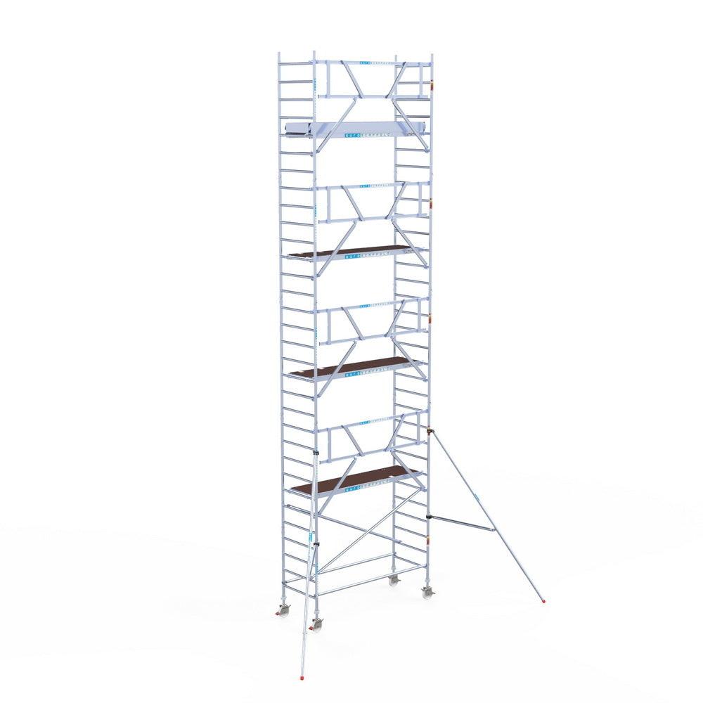 Unsere Rollgerüste sind in verschiedenen Breiten erhältlich, typischerweise 75 cm, 90 cm und 135 cm, abhängig vom jeweiligen Modell und der Produktlinie (semi-professionell oder professionell). Die 75 cm Breite ist ideal für beengte Räume, während 135 cm maximale Arbeitsfläche bietet.