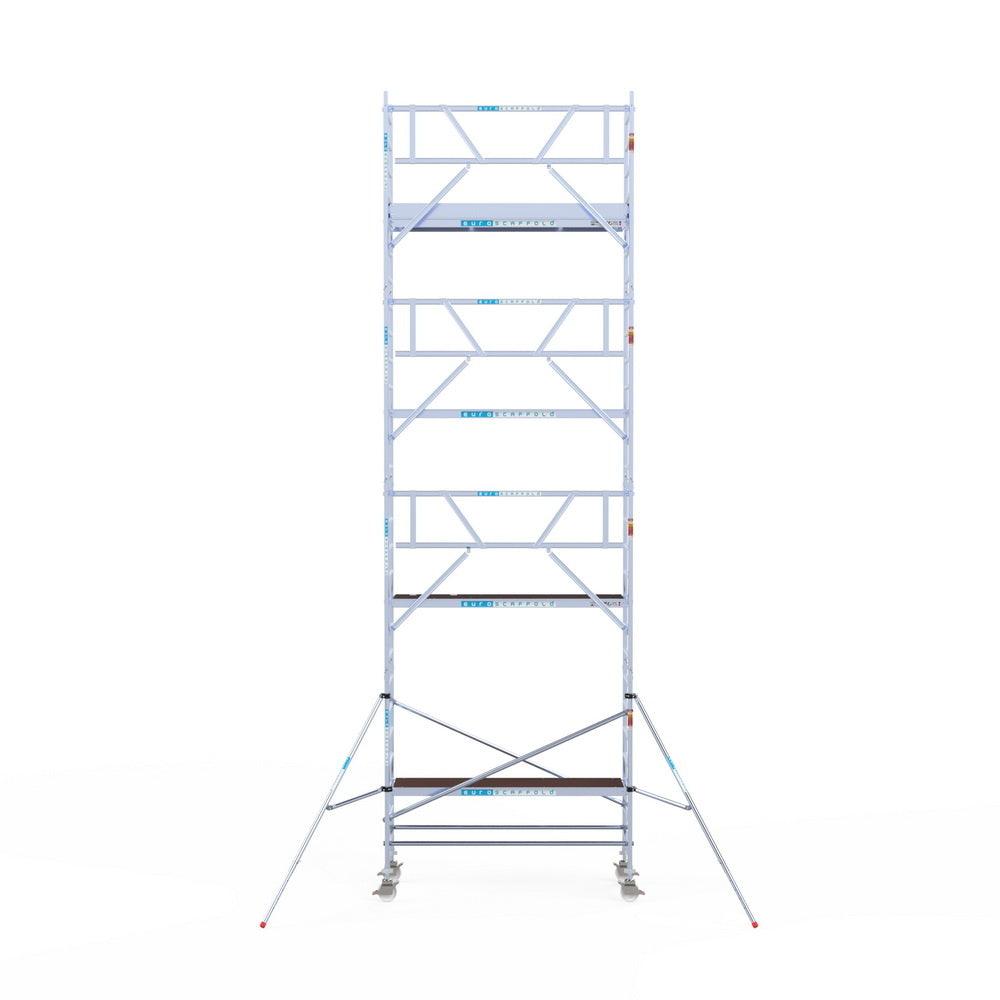 Unsere Rollgerüste sind in verschiedenen Breiten erhältlich, typischerweise 75 cm, 90 cm und 135 cm, abhängig vom jeweiligen Modell und der Produktlinie (semi-professionell oder professionell). Die 75 cm Breite ist ideal für beengte Räume, während 135 cm maximale Arbeitsfläche bietet.