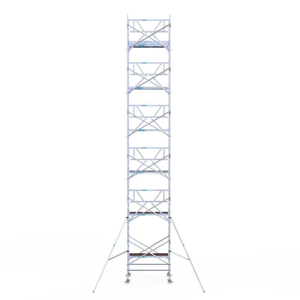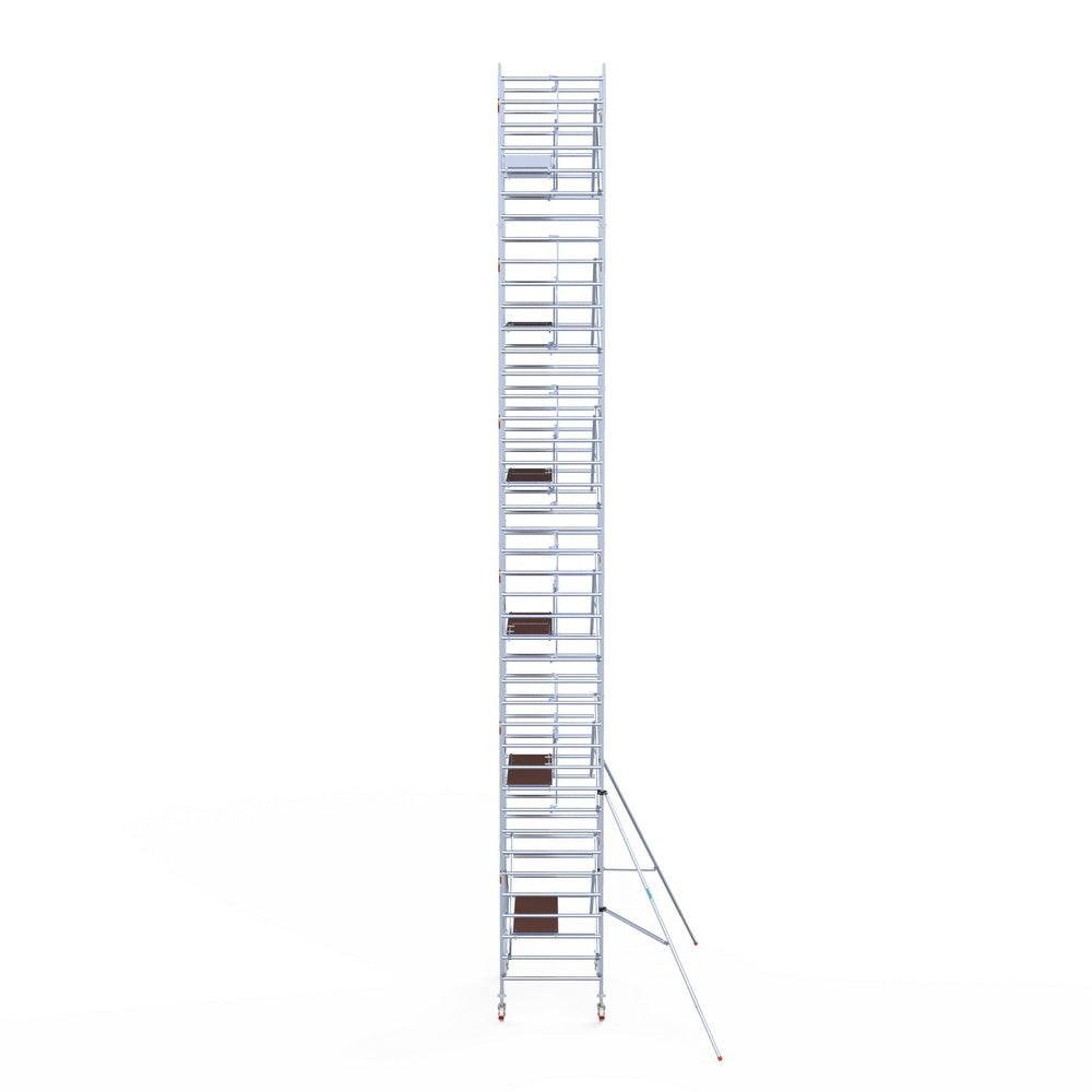 Unsere Rollgerüste sind in verschiedenen Breiten erhältlich, typischerweise 75 cm, 90 cm und 135 cm, abhängig vom jeweiligen Modell und der Produktlinie (semi-professionell oder professionell). Die 75 cm Breite ist ideal für beengte Räume, während 135 cm maximale Arbeitsfläche bietet.