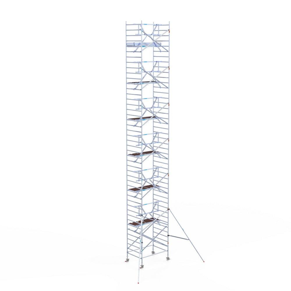 Rollgerüst Euroscaffold Professionell 135x190 14,2m Arbeitshöhe Carbonplattform gegen Fassade