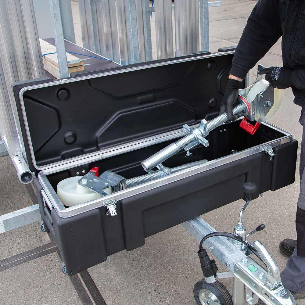 Abschließbarer Gerüstanhänger 250 + Rollgerüst Standard 135x250 12,2 m Arbeitshöhe