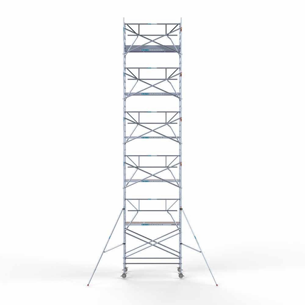 Unsere Rollgerüste sind in verschiedenen Breiten erhältlich, typischerweise 75 cm, 90 cm und 135 cm, abhängig vom jeweiligen Modell und der Produktlinie (semi-professionell oder professionell). Die 75 cm Breite ist ideal für beengte Räume, während 135 cm maximale Arbeitsfläche bietet.