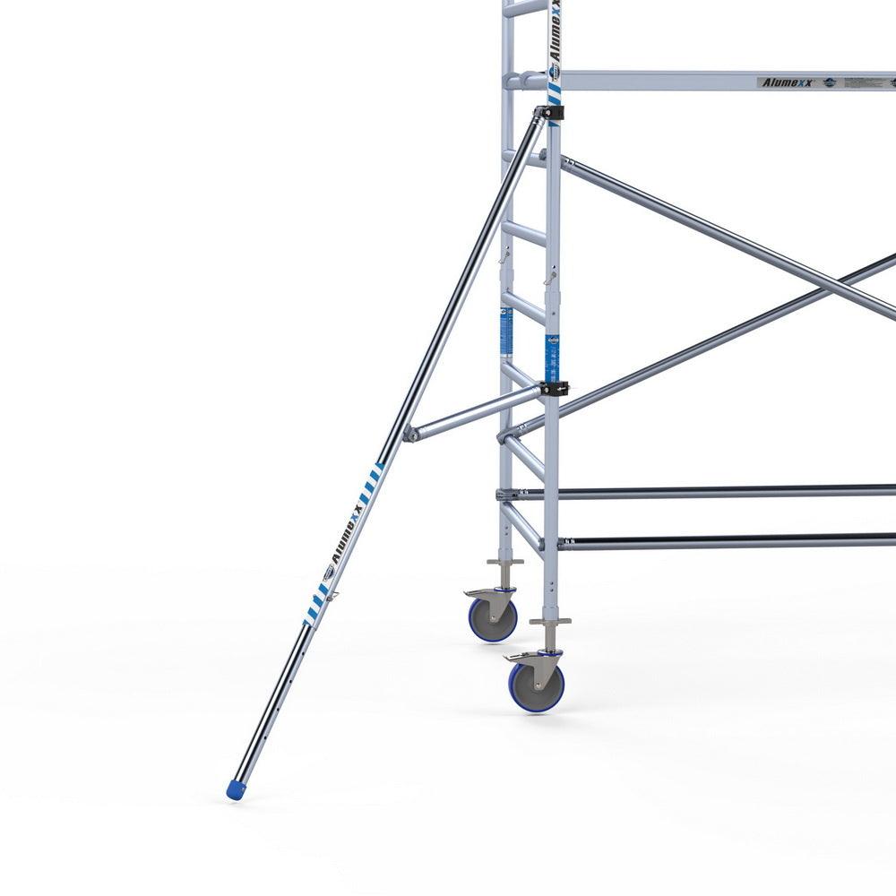 Unsere Rollgerüste sind in verschiedenen Breiten erhältlich, typischerweise 75 cm, 90 cm und 135 cm, abhängig vom jeweiligen Modell und der Produktlinie (semi-professionell oder professionell). Die 75 cm Breite ist ideal für beengte Räume, während 135 cm maximale Arbeitsfläche bietet.