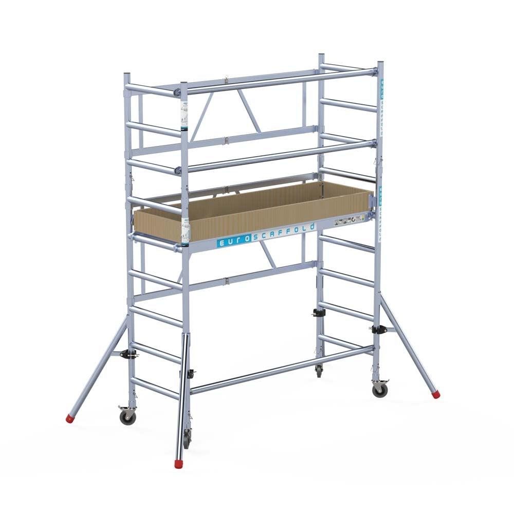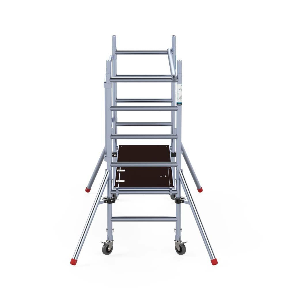 Unsere Rollgerüste sind in verschiedenen Breiten erhältlich, typischerweise 75 cm, 90 cm und 135 cm, abhängig vom jeweiligen Modell und der Produktlinie (semi-professionell oder professionell). Die 75 cm Breite ist ideal für beengte Räume, während 135 cm maximale Arbeitsfläche bietet.