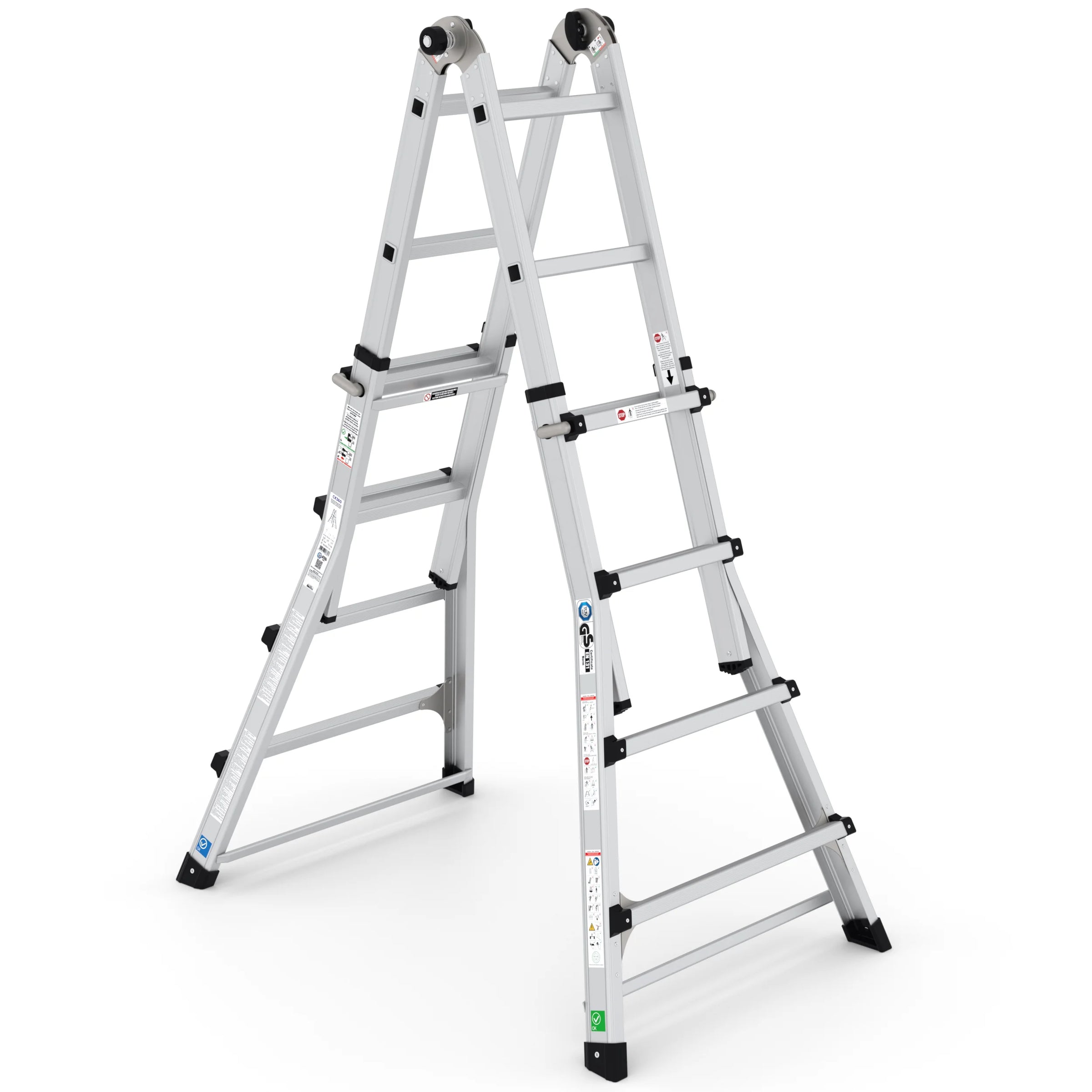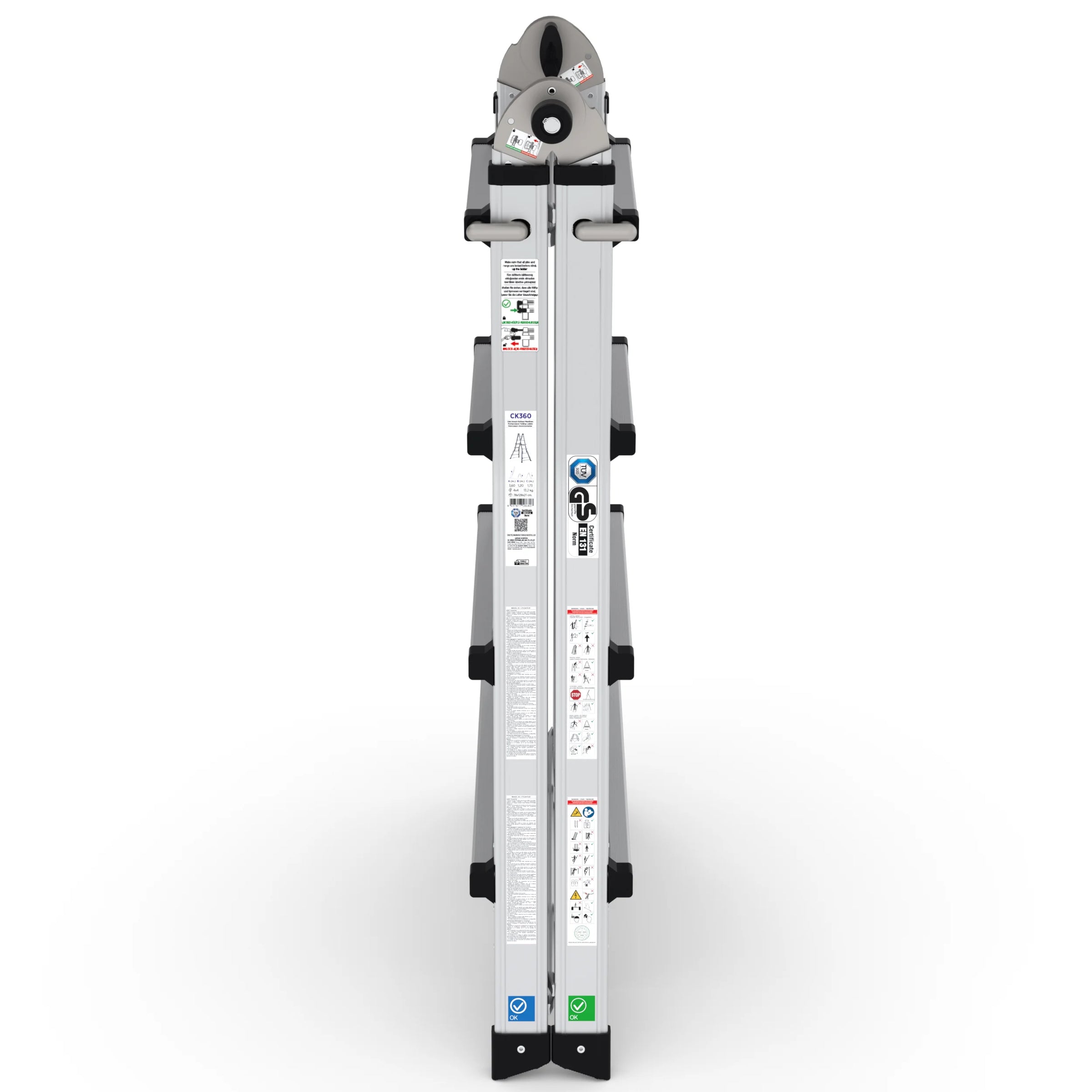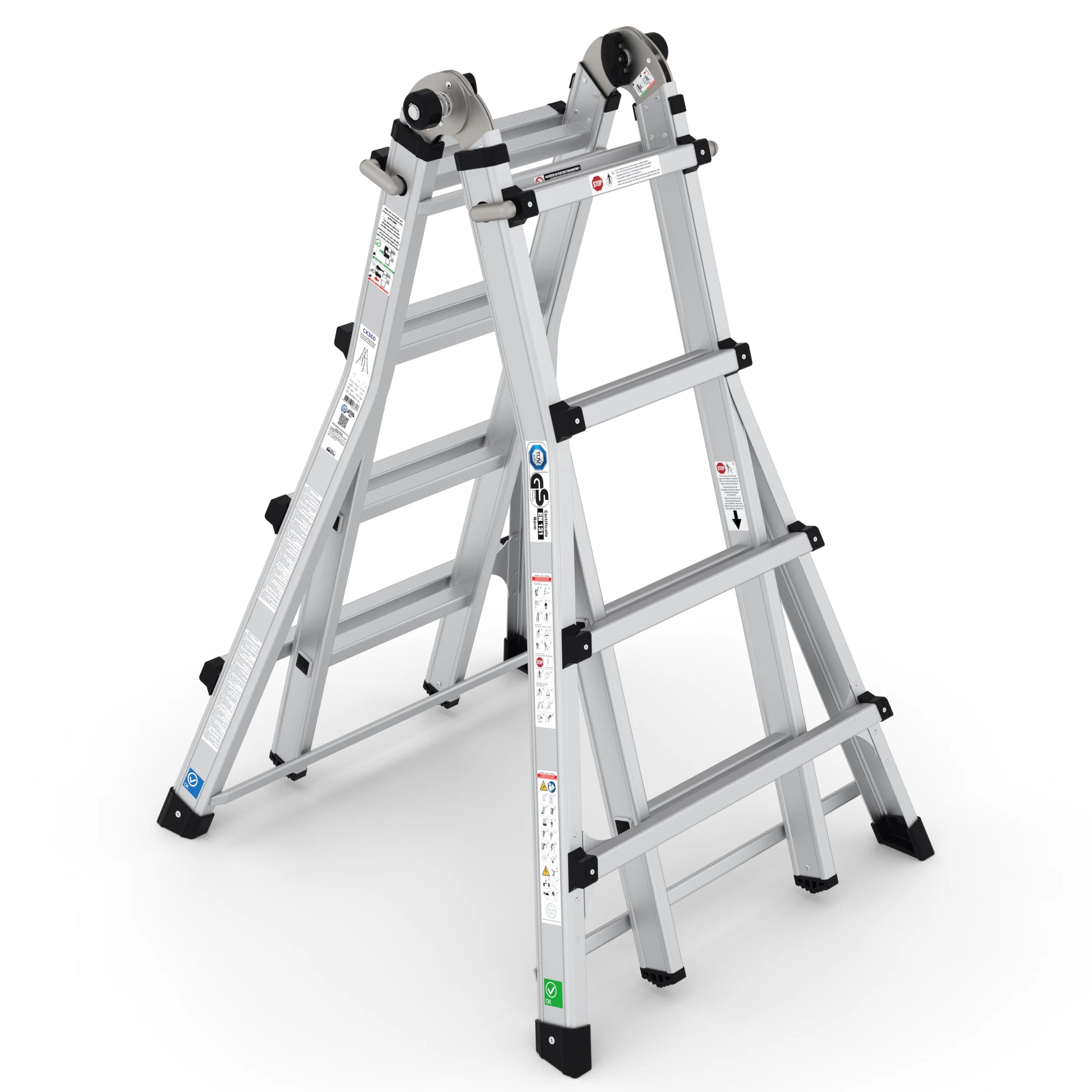 Die multifunktionale Klappleiter bietet beispiellose Flexibilität für verschiedene Aufgaben. Durch zusätzliche horizontale Querverbindungen ist diese Leiter noch stabiler und somit ideal für den intensiven Einsatz geeignet.