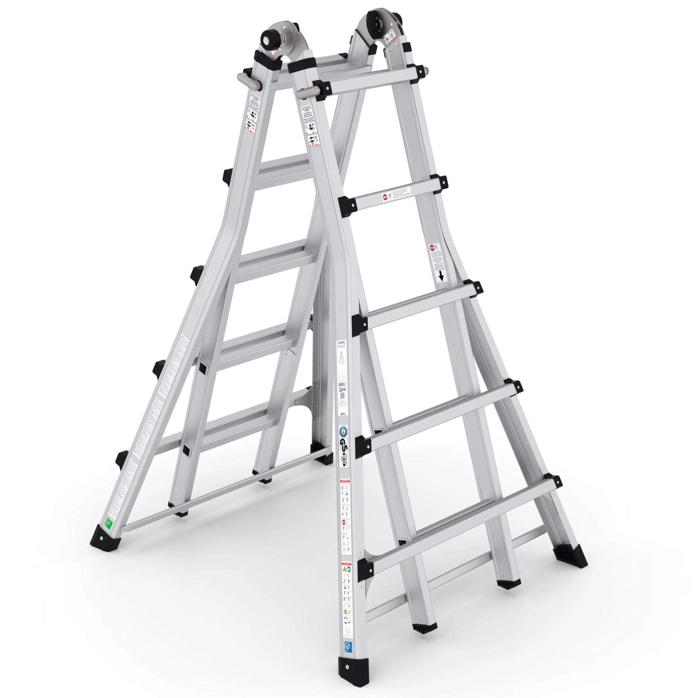 Die multifunktionale Klappleiter bietet beispiellose Flexibilität für verschiedene Aufgaben. Durch zusätzliche horizontale Querverbindungen ist diese Leiter noch stabiler und somit ideal für den intensiven Einsatz geeignet.