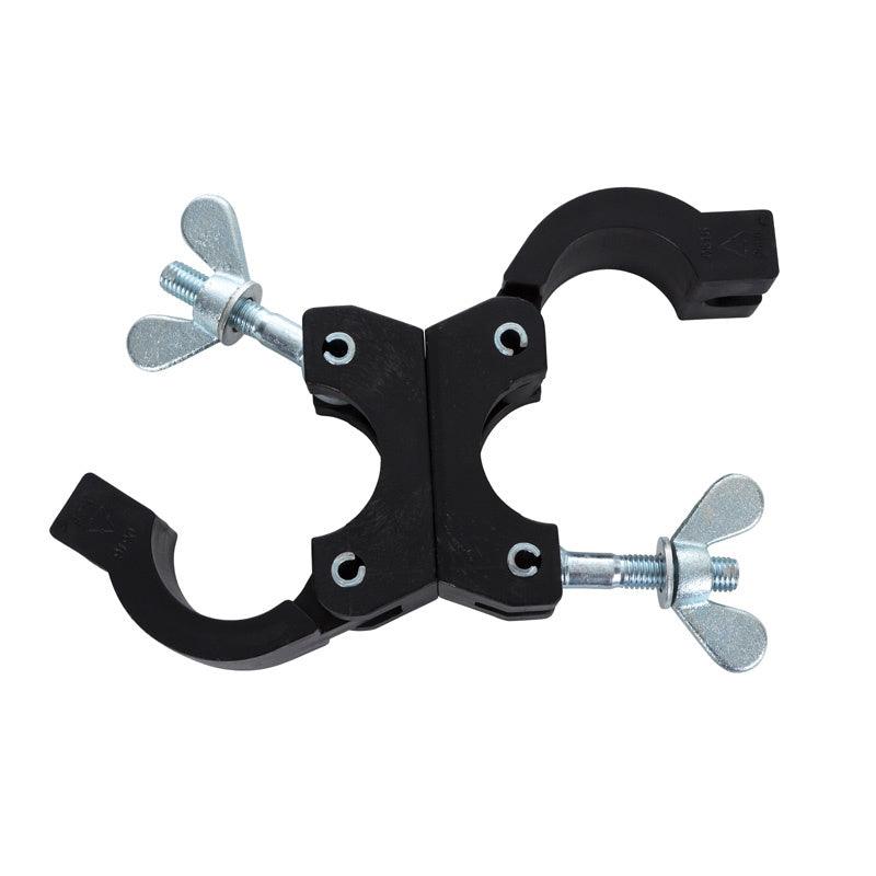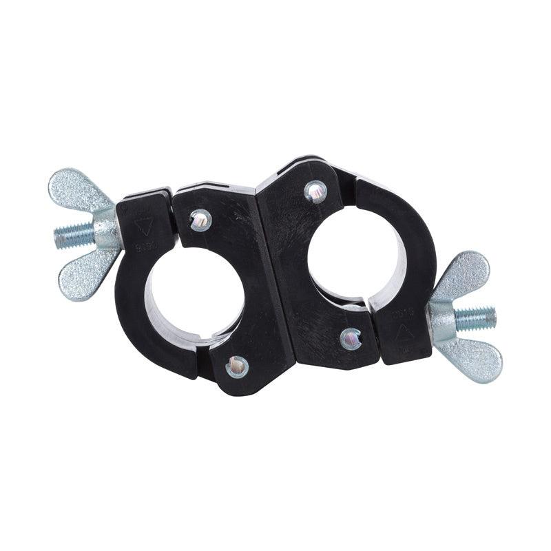 Schwarze Drehkupplung aus Kunststoff, ausgestattet mit einer Flügelmutter zum Verbinden des Rollgerüsts. Die Montage ist dank der Flügelmutter schnell und einfach. Drehkupplungen können verwendet werden, um beispielsweise ein Arbeitszelt oder eine Ausweichkonsole an einem Gerüst zu befestigen. Mit einer Kupplung aus Nylon ist das Risiko einer Beschädigung des Gerüstmaterials minimal. Dies kann bei einer Kupplung aus Stahl vorkommen, wenn diese zu fest angezogen wird. Die Drehkupplung ist auch in Stahl und/oder mit einer normalen Schraube anstelle einer Flügelmutter erhältlich.