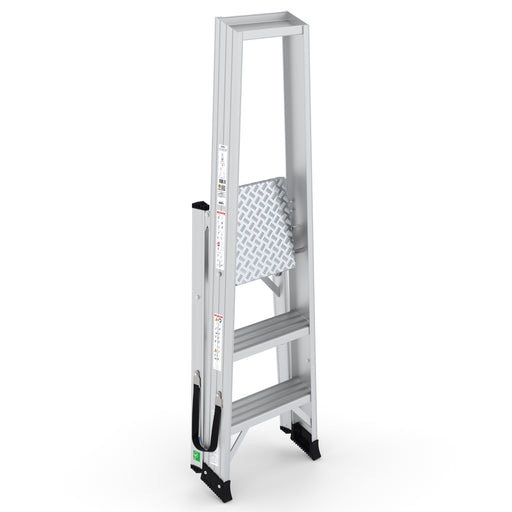 Spezifikationen Eurostairs Stehleiter (Limited Edition) Die Stehleiter mit 3 Stufen ist aus hochwertigem, eloxiertem Aluminium gefertigt. Die schwa...