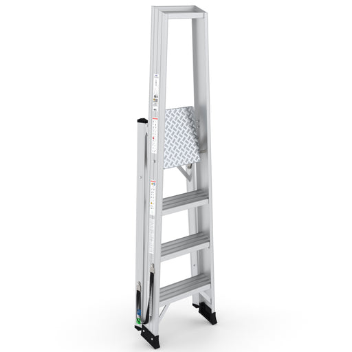 Robuste Eurostairs Stehleiter mit 4 Stufen Die Aluminium-Plattformleiter mit vier Stufen von Eurostairs ist leicht und hat eine schmutzabweisende B...