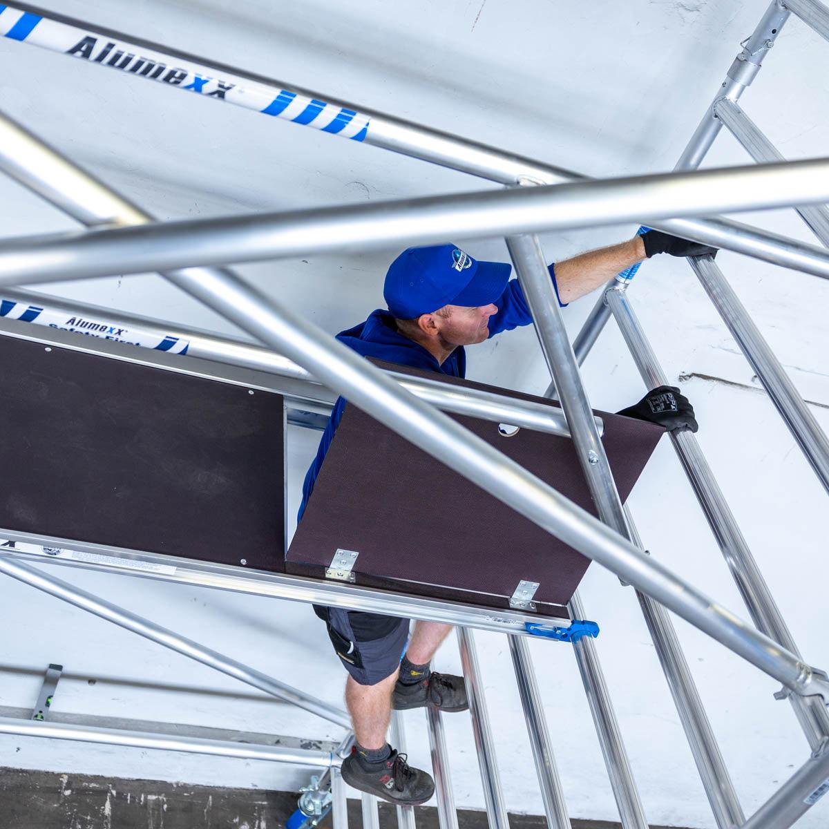 Rollgerüst Alumexx Extra 135x250 6,2 m Arbeitshöhe an der Fassade