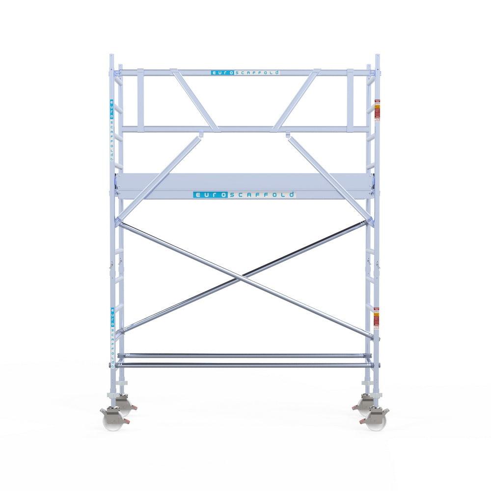 Unsere Rollgerüste sind in verschiedenen Breiten erhältlich, typischerweise 75 cm, 90 cm und 135 cm, abhängig vom jeweiligen Modell und der Produktlinie (semi-professionell oder professionell). Die 75 cm Breite ist ideal für beengte Räume, während 135 cm maximale Arbeitsfläche bietet.
