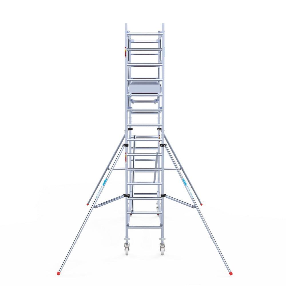 Unsere Rollgerüste sind in verschiedenen Breiten erhältlich, typischerweise 75 cm, 90 cm und 135 cm, abhängig vom jeweiligen Modell und der Produktlinie (semi-professionell oder professionell). Die 75 cm Breite ist ideal für beengte Räume, während 135 cm maximale Arbeitsfläche bietet.