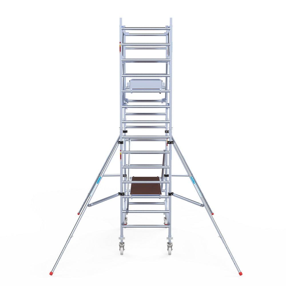 Unsere Rollgerüste sind in verschiedenen Breiten erhältlich, typischerweise 75 cm, 90 cm und 135 cm, abhängig vom jeweiligen Modell und der Produktlinie (semi-professionell oder professionell). Die 75 cm Breite ist ideal für beengte Räume, während 135 cm maximale Arbeitsfläche bietet.