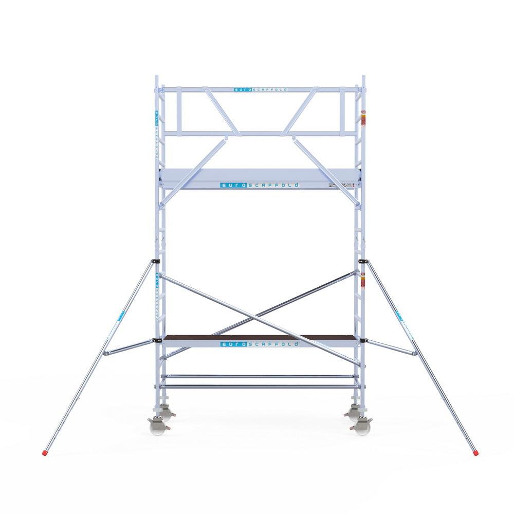 Unsere Rollgerüste sind in verschiedenen Breiten erhältlich, typischerweise 75 cm, 90 cm und 135 cm, abhängig vom jeweiligen Modell und der Produktlinie (semi-professionell oder professionell). Die 75 cm Breite ist ideal für beengte Räume, während 135 cm maximale Arbeitsfläche bietet.