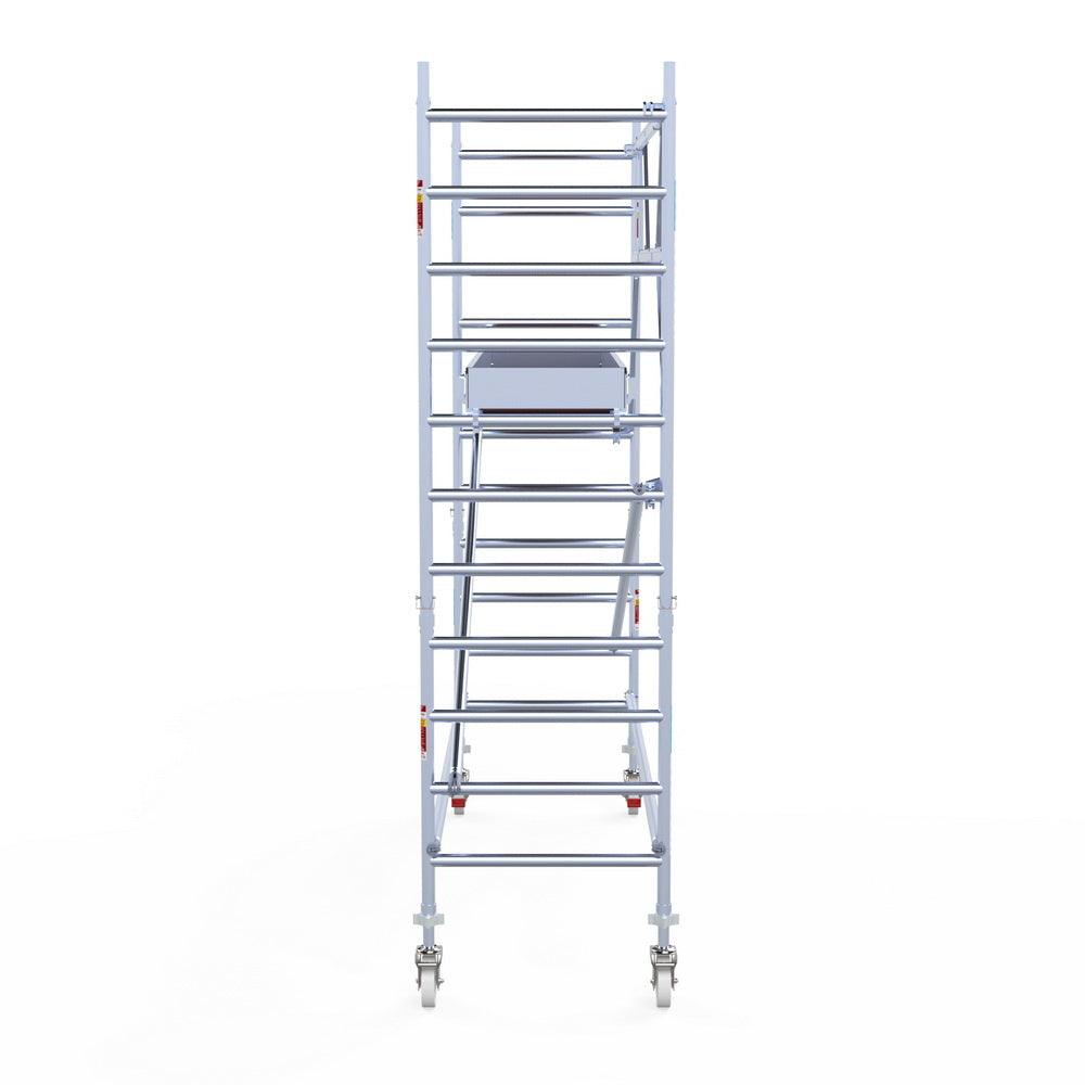 Unsere Rollgerüste sind in verschiedenen Breiten erhältlich, typischerweise 75 cm, 90 cm und 135 cm, abhängig vom jeweiligen Modell und der Produktlinie (semi-professionell oder professionell). Die 75 cm Breite ist ideal für beengte Räume, während 135 cm maximale Arbeitsfläche bietet.