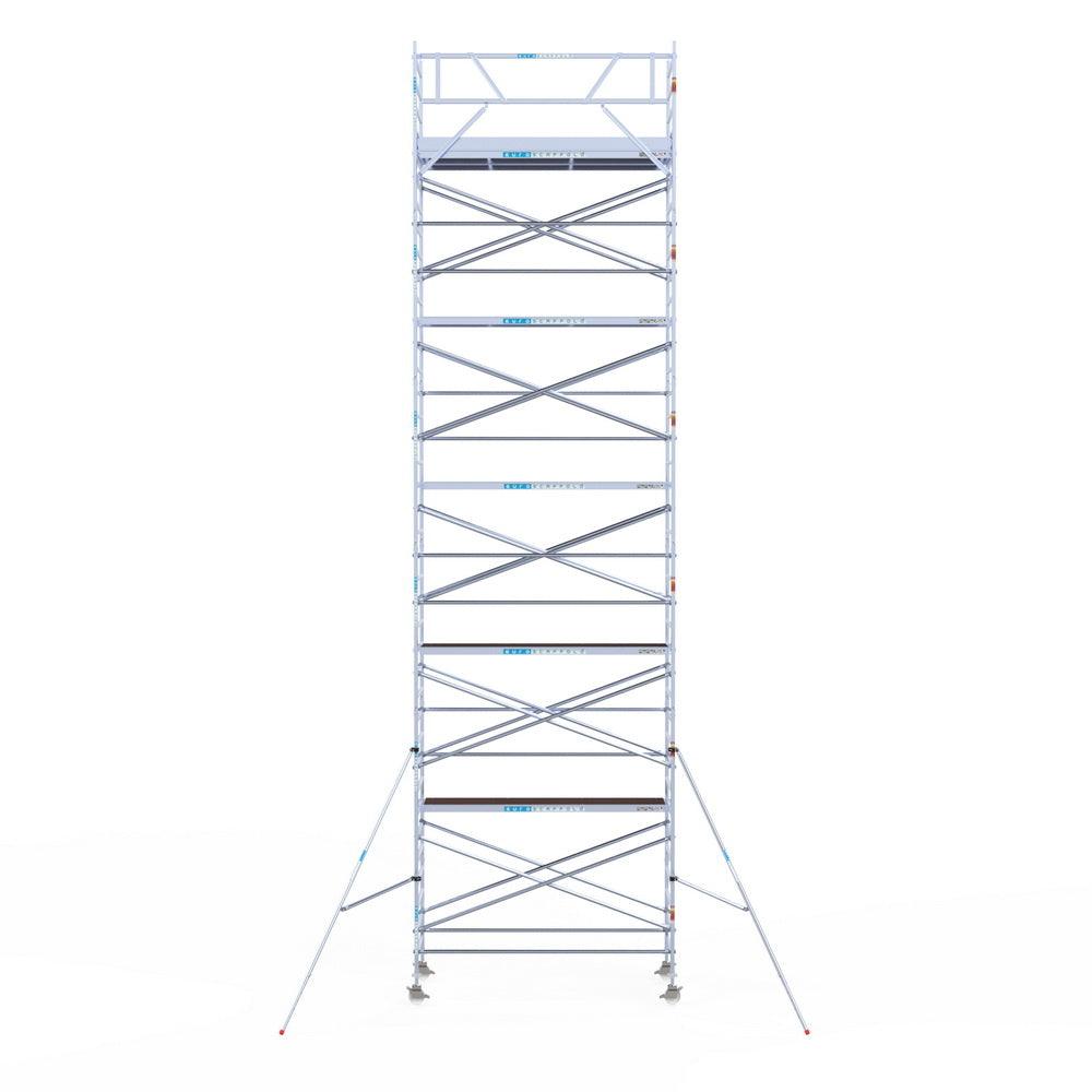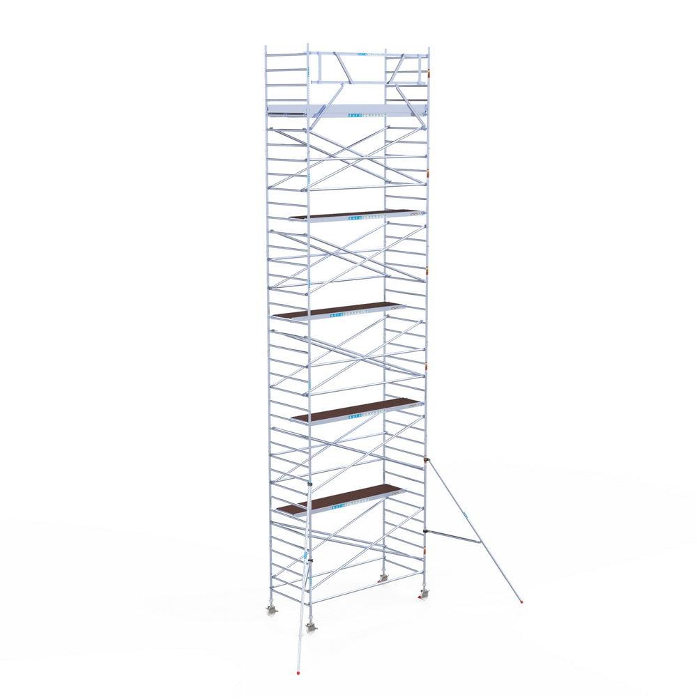 Unsere Rollgerüste sind in verschiedenen Breiten erhältlich, typischerweise 75 cm, 90 cm und 135 cm, abhängig vom jeweiligen Modell und der Produktlinie (semi-professionell oder professionell). Die 75 cm Breite ist ideal für beengte Räume, während 135 cm maximale Arbeitsfläche bietet.
