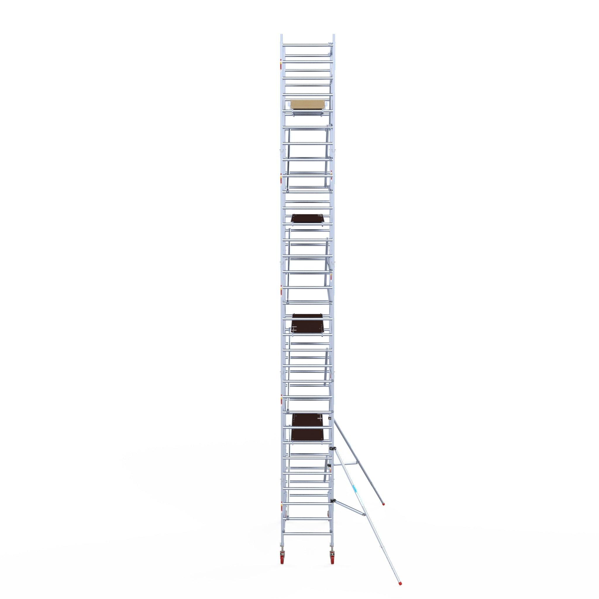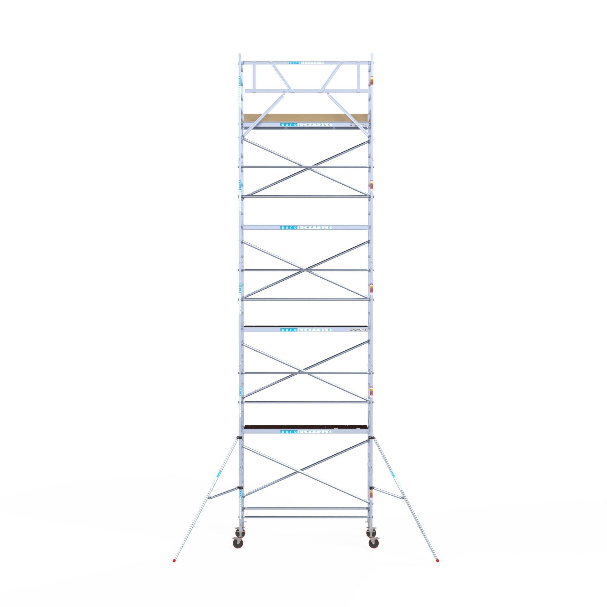 Unsere Rollgerüste sind in verschiedenen Breiten erhältlich, typischerweise 75 cm, 90 cm und 135 cm, abhängig vom jeweiligen Modell und der Produktlinie (semi-professionell oder professionell). Die 75 cm Breite ist ideal für beengte Räume, während 135 cm maximale Arbeitsfläche bietet.
