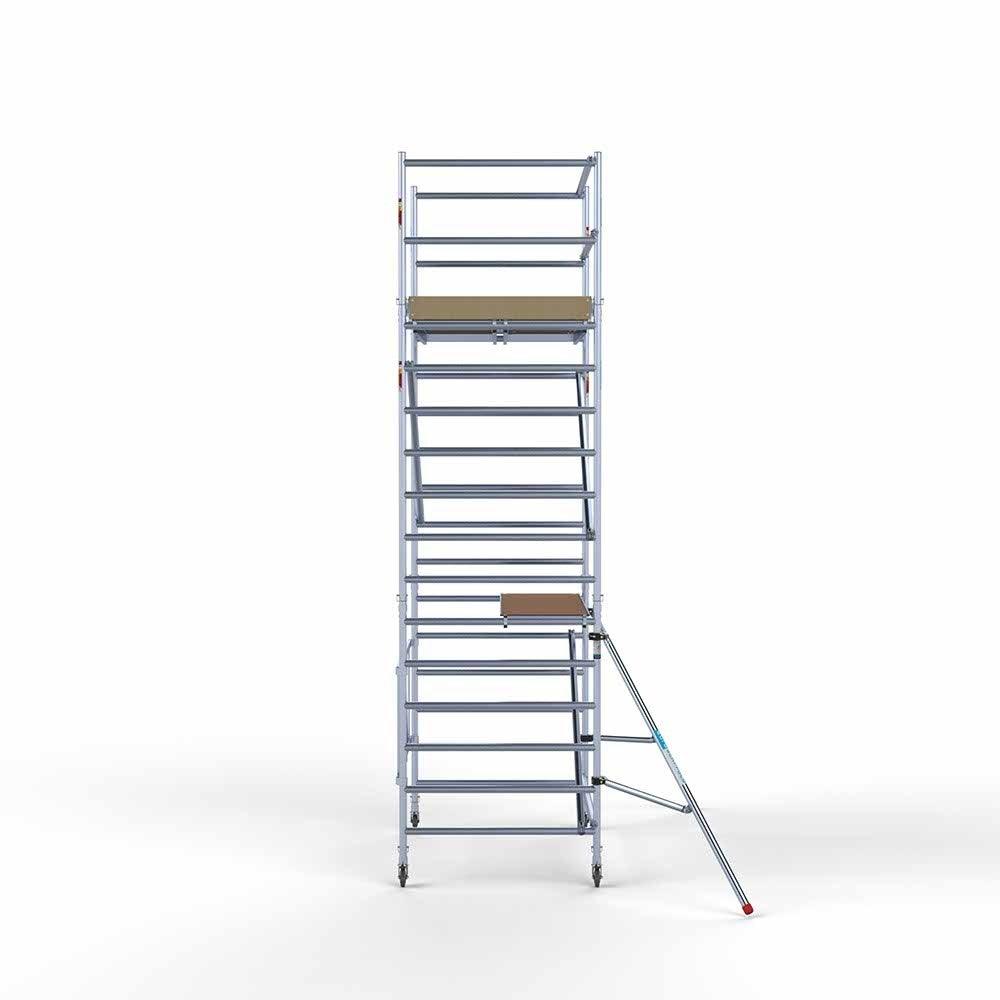Unsere Rollgerüste sind in verschiedenen Breiten erhältlich, typischerweise 75 cm, 90 cm und 135 cm, abhängig vom jeweiligen Modell und der Produktlinie (semi-professionell oder professionell). Die 75 cm Breite ist ideal für beengte Räume, während 135 cm maximale Arbeitsfläche bietet.
