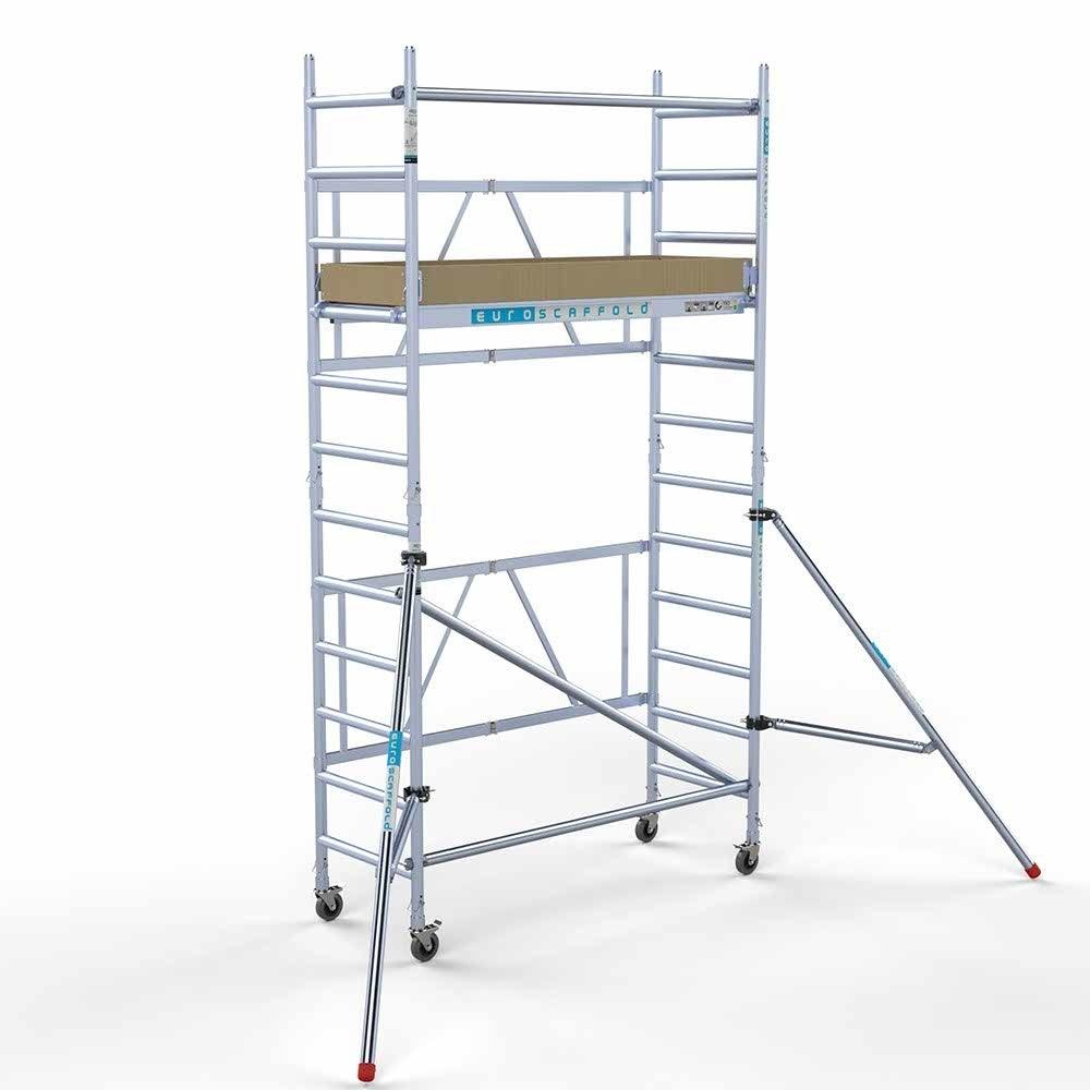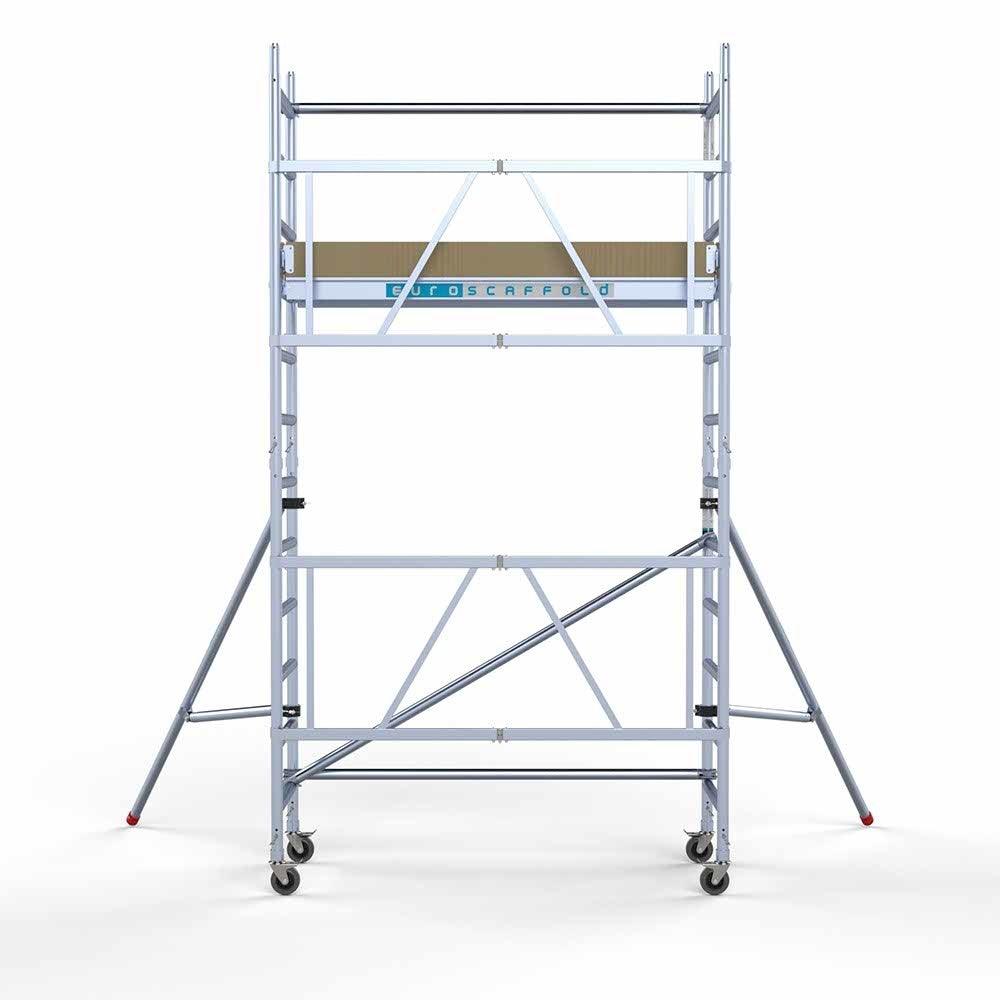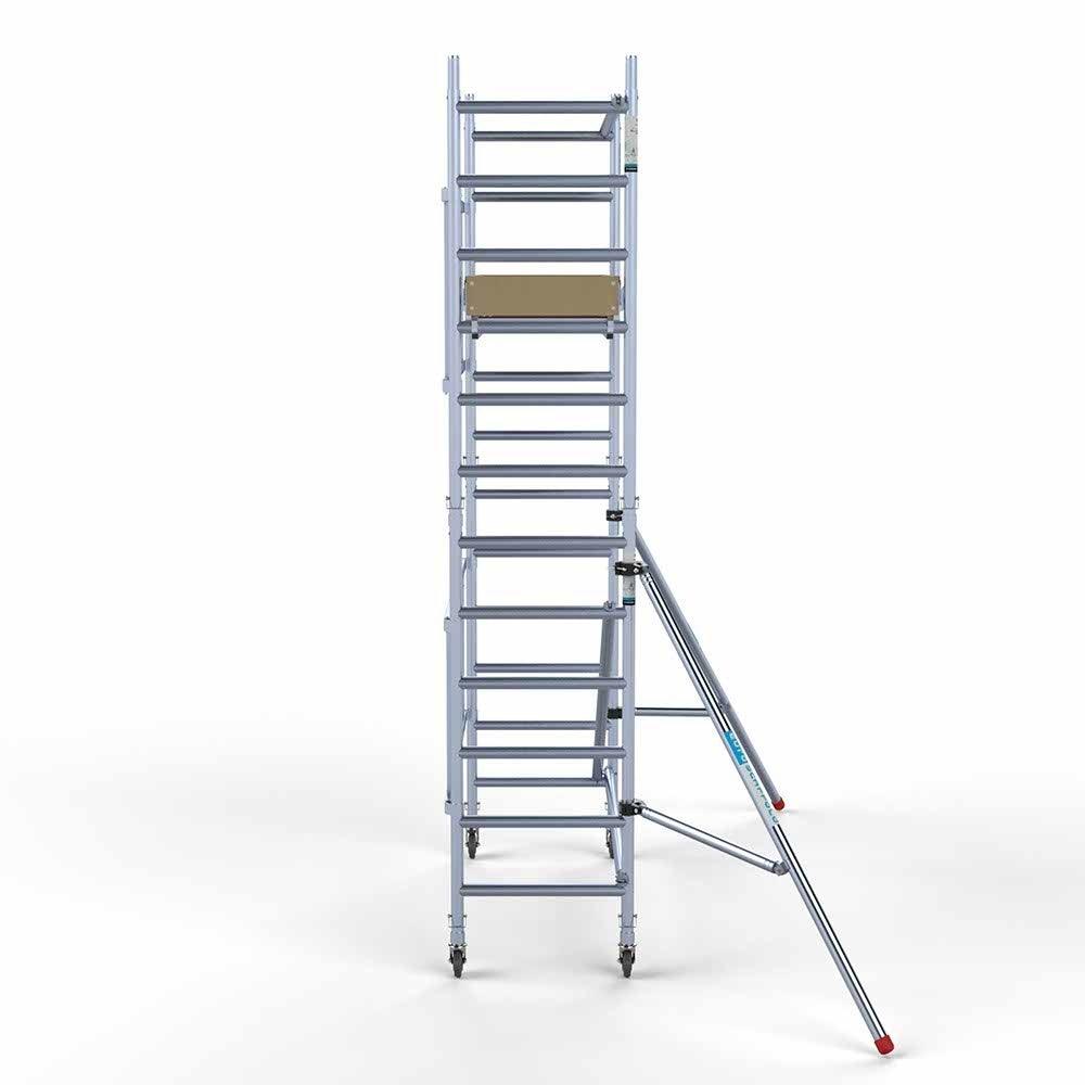 Unsere Rollgerüste sind in verschiedenen Breiten erhältlich, typischerweise 75 cm, 90 cm und 135 cm, abhängig vom jeweiligen Modell und der Produktlinie (semi-professionell oder professionell). Die 75 cm Breite ist ideal für beengte Räume, während 135 cm maximale Arbeitsfläche bietet.