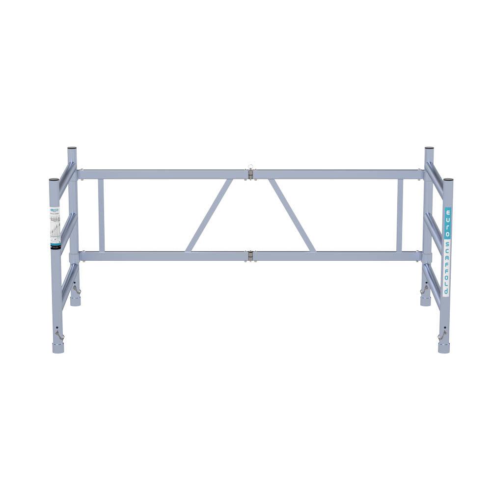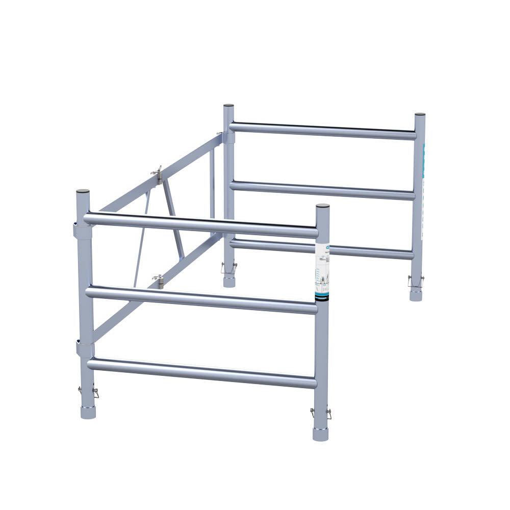 Mit dieser losen Verlängerung von 190 cm Länge und 90 cm Breite können Sie die Arbeitshöhe Ihres Zimmergerüsts problemlos erhöhen. Das erhöht Ihren Arbeitskomfort. Der leichte Aluminiumaufsatz hat 3 Sprossen auf jeder Seite und eine Höhe von 1 Meter. Für zusätzliche Sicherheit sind die Sprossen mit einem Anti-Rutsch-Profil versehen. Da das Anbaugerät faltbar ist, passt es durch Türöffnungen und ist leicht zu transportieren und zu verstauen. Kompatibel mit Euroscaffold-Gerüsten und anderen gängigen Marken mit einer Breite von 90 cm.