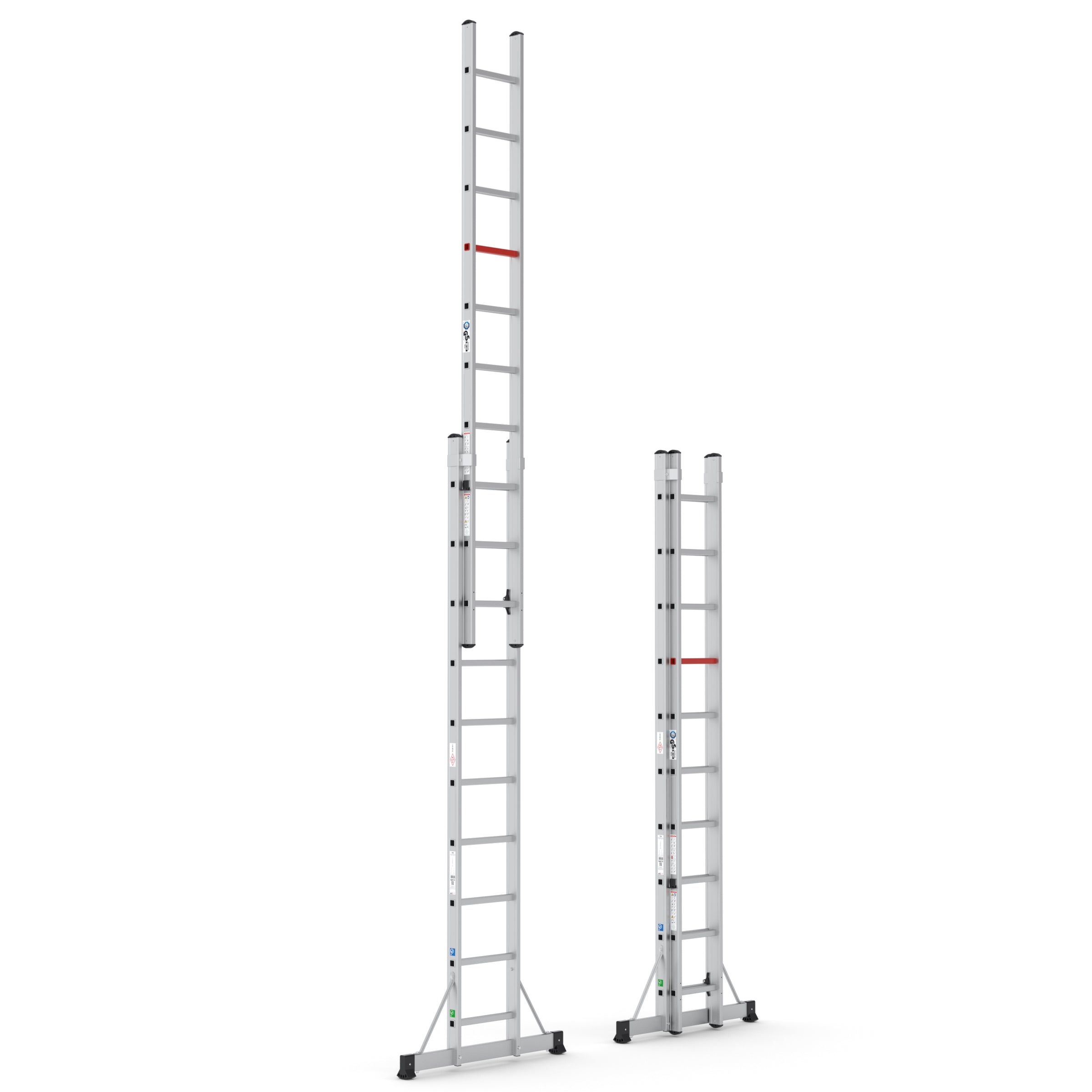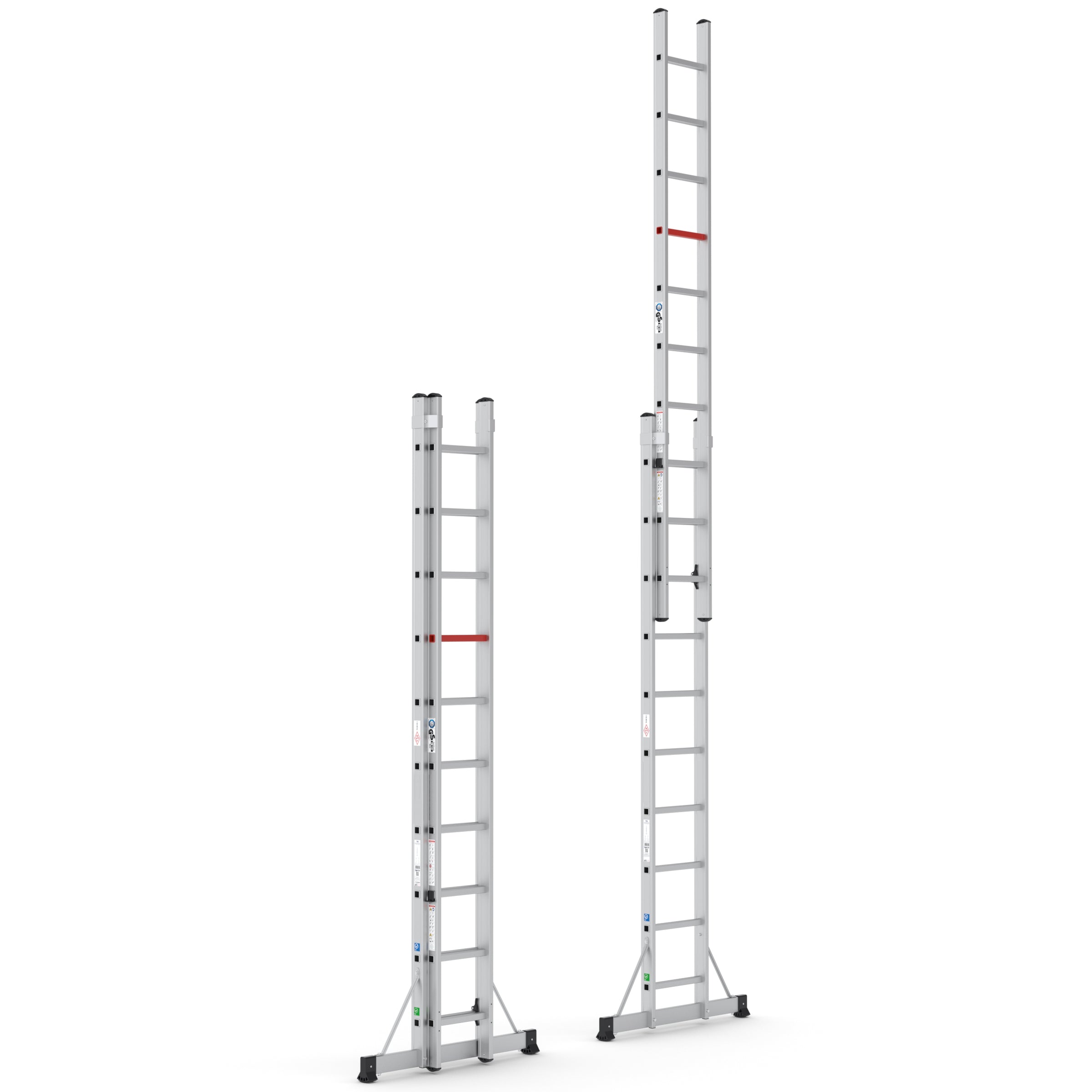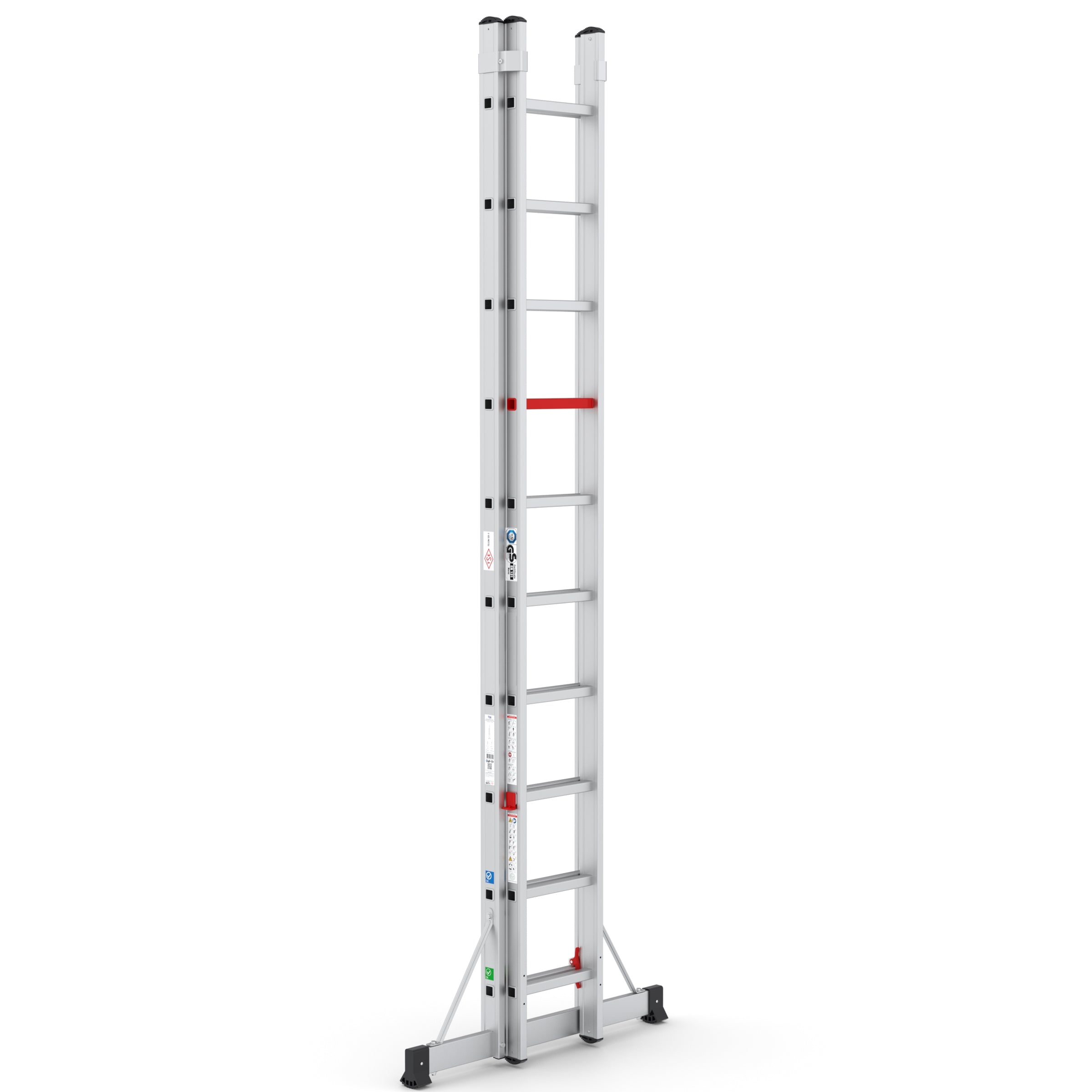 TopSafe-Leitern werden standardmäßig als professionelle Schiebeleitern geliefert und sind sowohl in der 2-teiligen als auch in der 3-teiligen Variante erhältlich. Darüber hinaus sind standardmäßig Wandrollen im Lieferumfang enthalten, die für zusätzlichen Komfort und Sicherheit beim Aufstellen und Bewegen der Leiter sorgen.