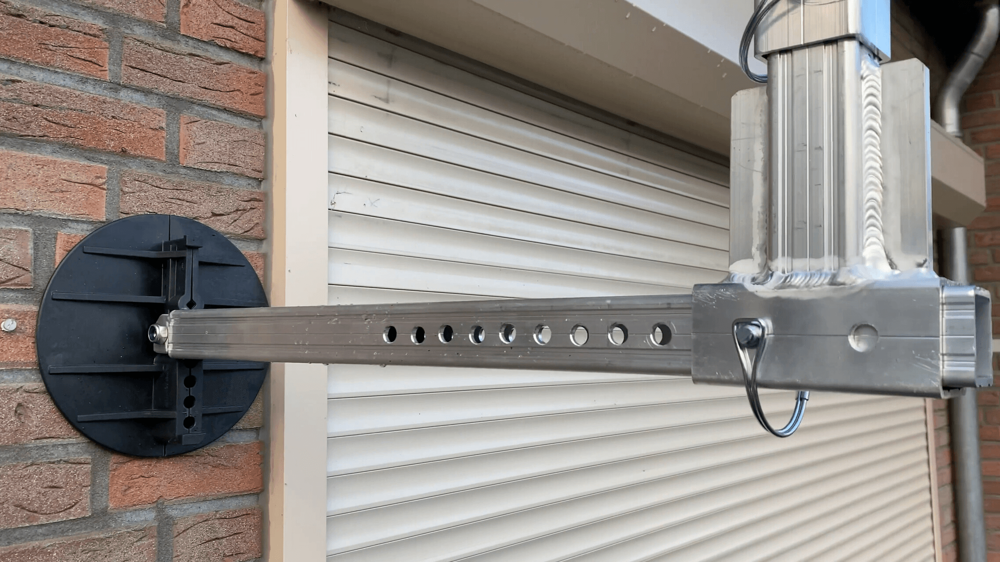 Die Stützen werden oben und unten um den Rahmen gelegt. Auf diese Weise können Sie die Stützen an jeder gewünschten Stelle anbringen. Das kann praktisch sein, wenn z.B. ein Fenster im Weg ist.