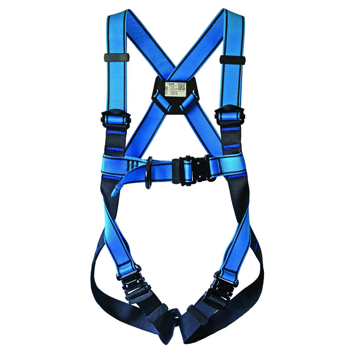 • Auffanggurt mit 1 Rückenpunkt (D-Ring) und 1 zentralem Brustpunkt (D-Ring), einschließlich Beckengurt und mit 5 Einstellpunkten. Langlebige Verstellschnallen, die aus Sicherheitsgründen nicht demontiert werden können. Entspricht der Norm EN 361.